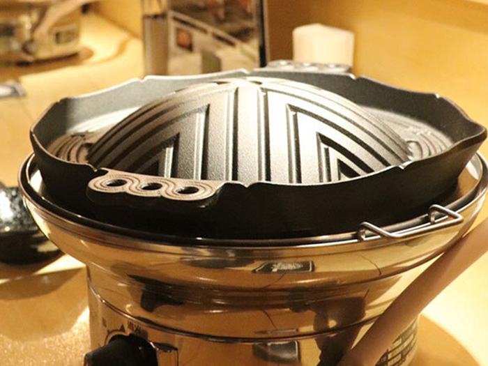 当店が取り扱うお鍋は、すべて「南部鉄器」製です。その形はお肉とお野菜を美味しく焼き上げるために計算し尽くされており、ジンギスカンの本当の味を楽しむなら、南部鉄器の専用鍋が1番です。南部鉄器は脂のなじみが良く、使い込むほど脂が染み込んで皮膜が形成されてお肉をおいしく焼き上げることができます。